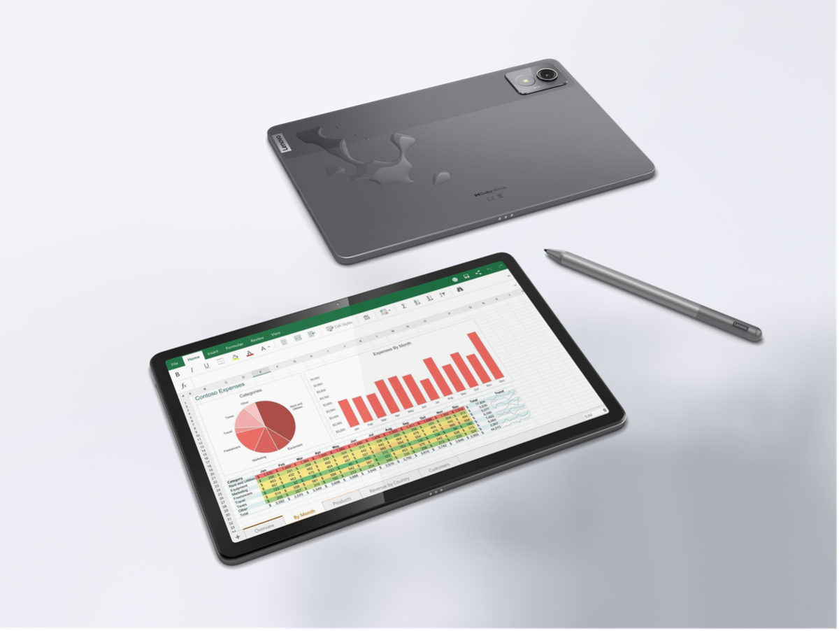 Lenovo Tab K11 tablet, şık çift tonlu görünümüyle lüks ve dayanıklı bir tasarıma sahiptir. Suya ve toza